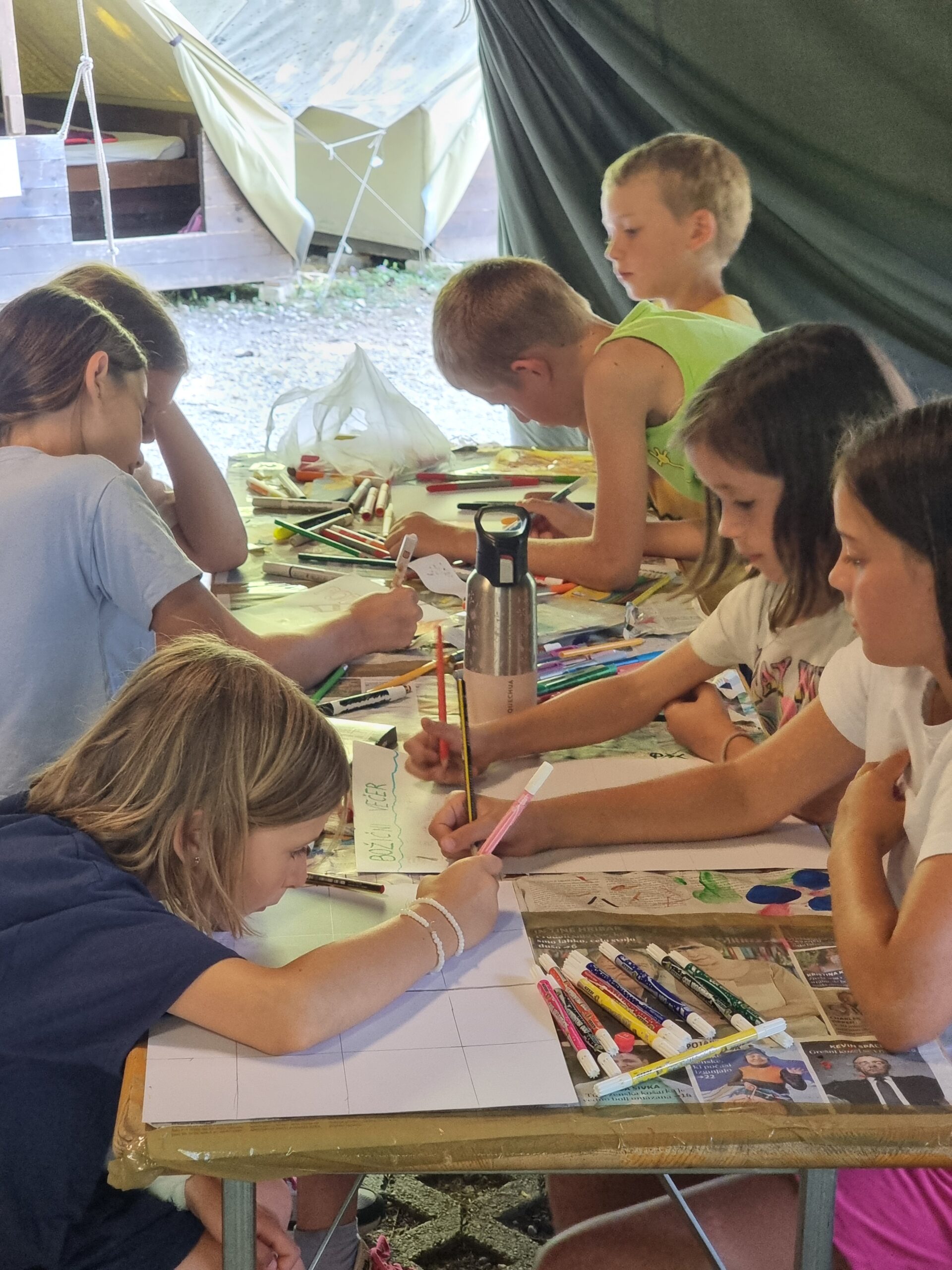 delavnica, kjer so se učili preživetja v naravi in postavljanja bivakov, ter igralna delavnica, medtem ko